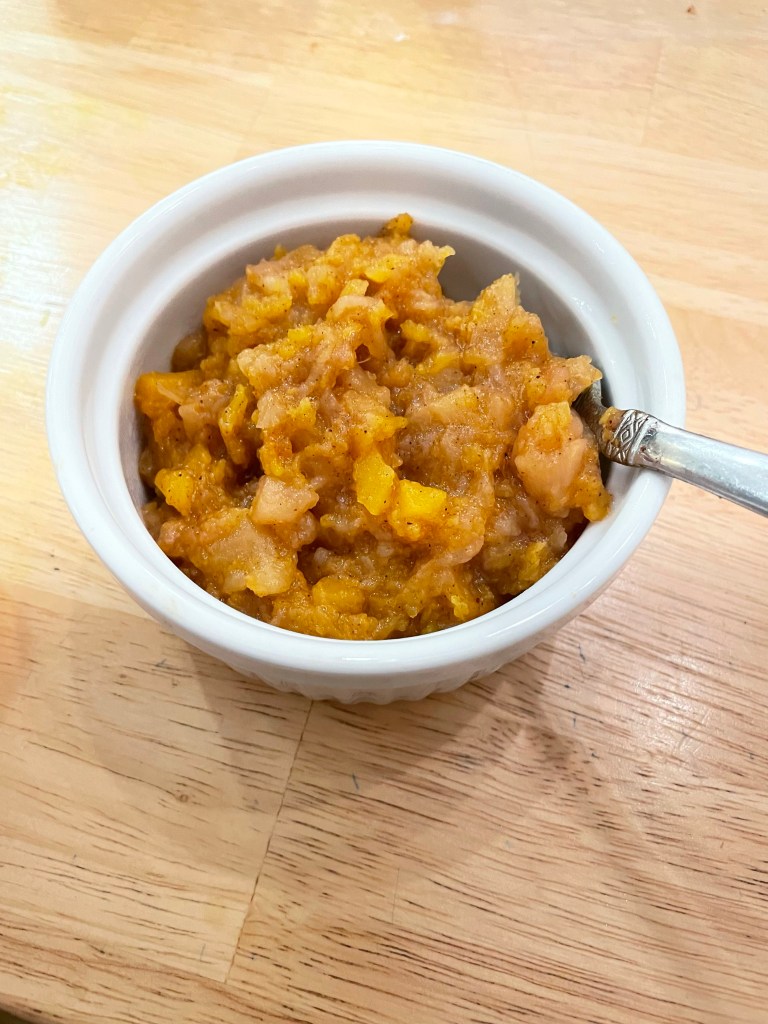 Once apples are soft and water collected at the bottom, drain liquid and set aside
